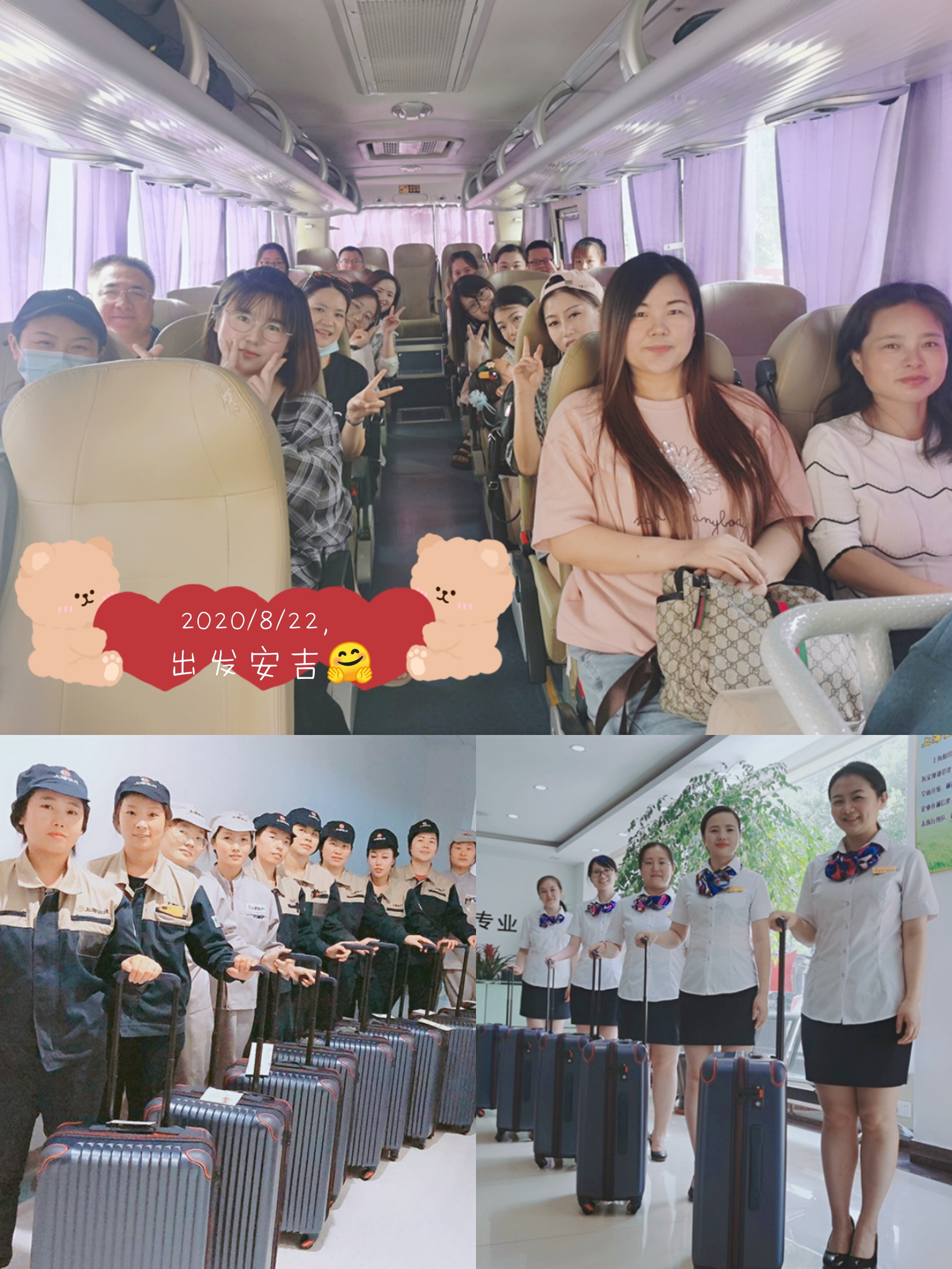 经过前期筹备和采购,团建选在8月22日、23日两天,地点在浙江安吉,出发前公司贴心为所有家人发放了行李箱。万事俱备,22日早上,我们跟着朝阳一起出发了。