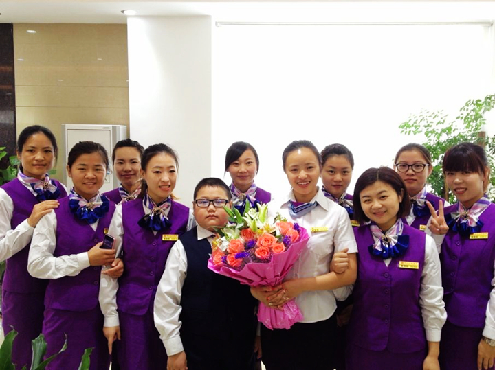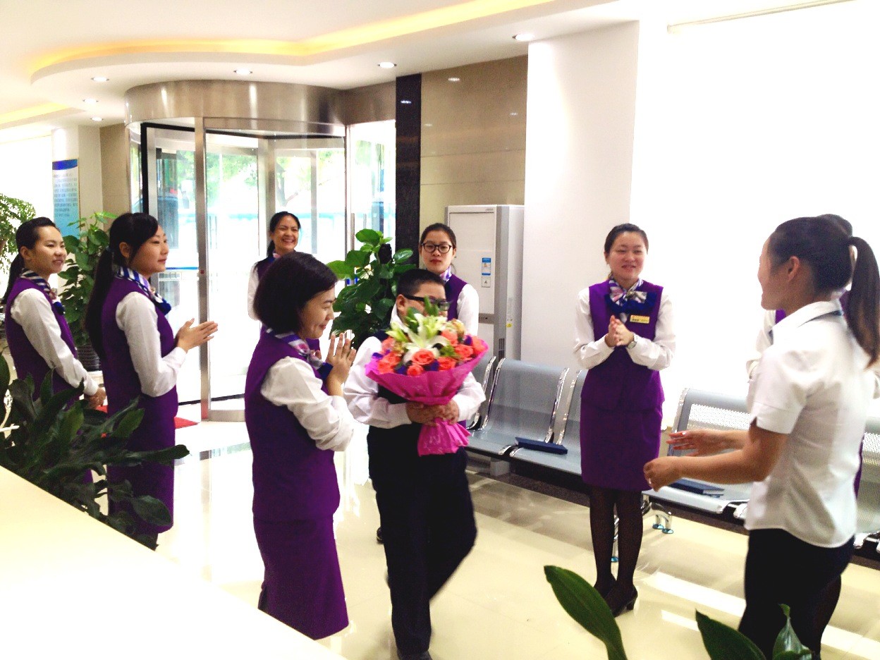 当晨会上响起浪漫而隆重的《婚礼进行曲》,鲜花天使马万锋手捧着花束向江林献花时,全场都沸腾起来了,大家为江林送上了衷心的祝福,祝愿她新婚快乐、白头偕老!