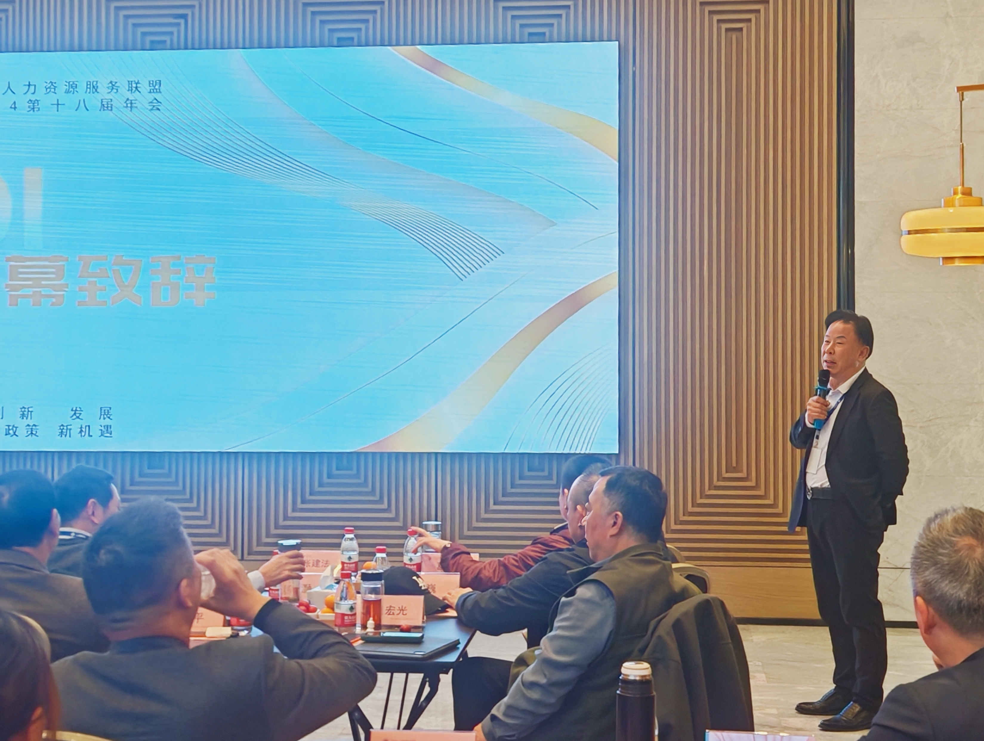 上海才俊人力资源(集团)有限公司董事长、全国人力资源服务联盟主席胡明胜先生出席会议开幕式并致辞。胡主席指出自全国人力资源服务联盟成立以来,一直致力于推动人力资源行业内的互助合作与信息共享,各成员单位均已成为行业的积极建设者。胡主席诚挚期待各成员单位能够深入探讨并共同研究人力资源行业在面对新形势、新政策以及新机遇时的应对策略和机制,优化生产结构,创新服务方式,以期实现行业的持续健康发展。